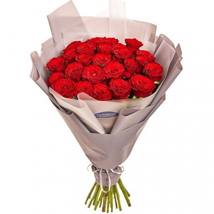 Description: Bouquet with packaging "25 red roses"