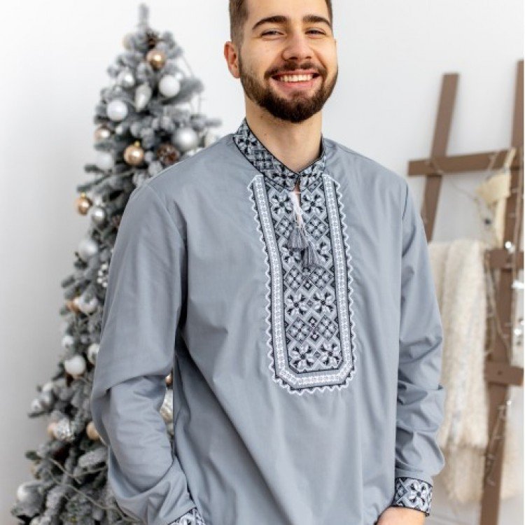 Men's embroidered shirt CAPRAL PLUS (GRAY WITH BLACK)