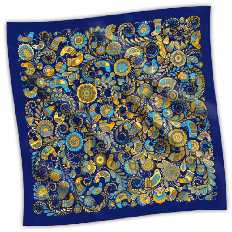 Description: Scarf "Birds of paradise". Sapphire, 90х90 cm