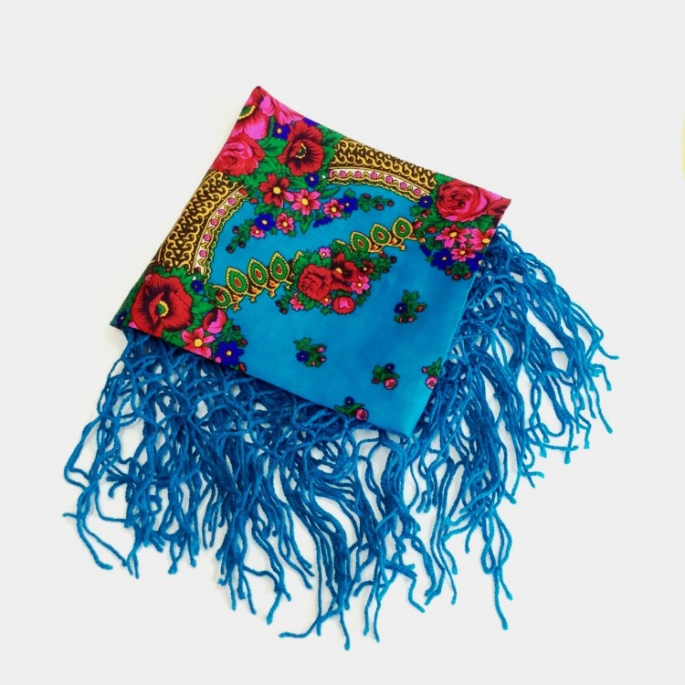 Опис: Хустка блакитна з квітами з люрексом UH-1054