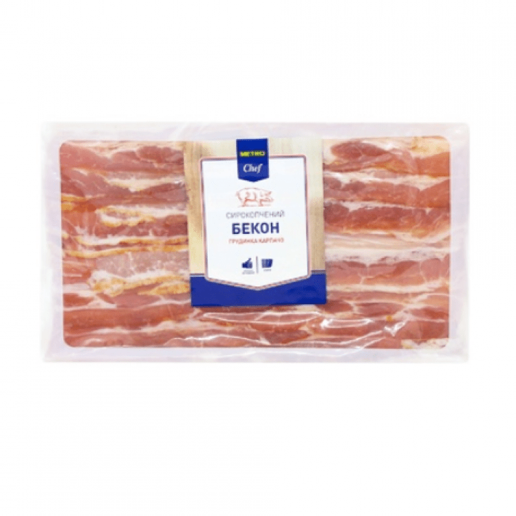 Опис: Бекон "Metro Chef" сирокопчений, нарізаний слайсами, 450г