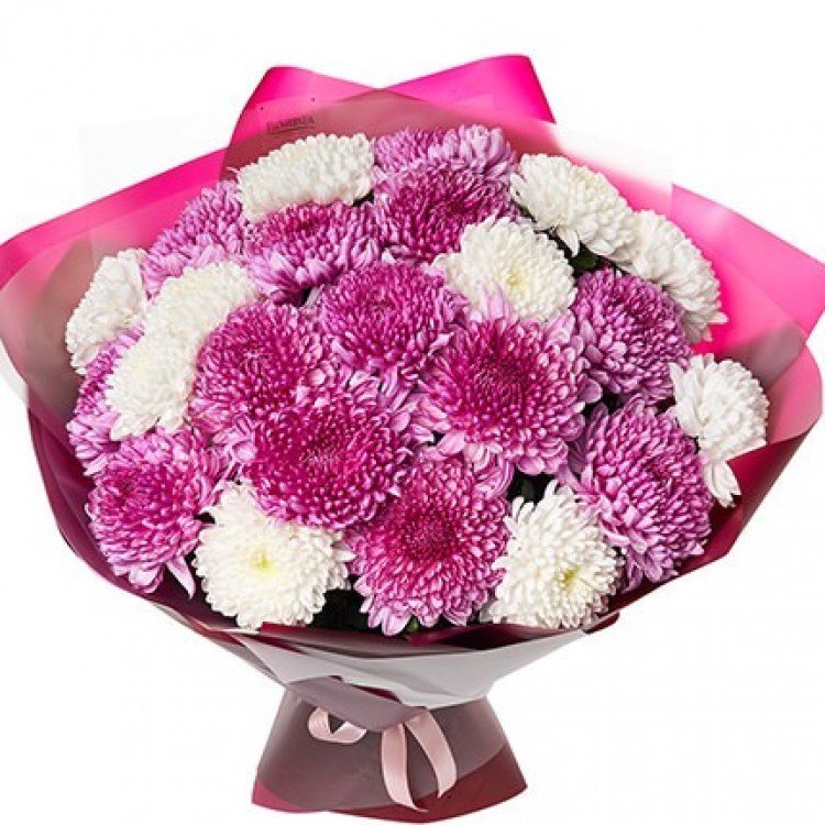 Опис: Букет "23 біло-рожеві хризантеми"