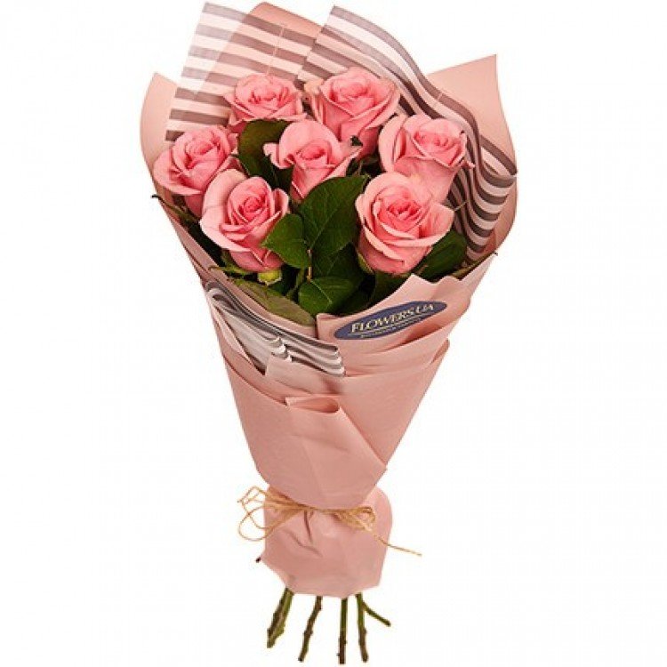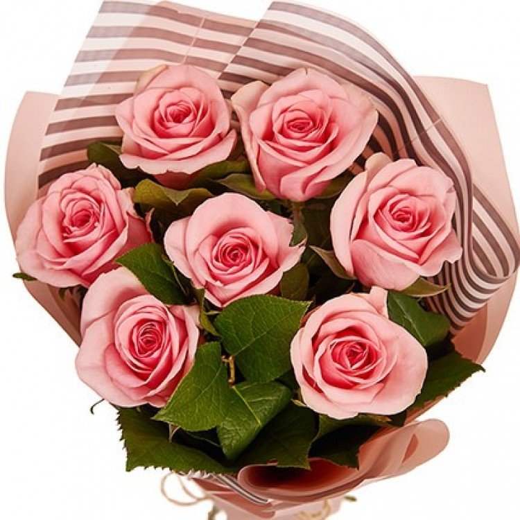 Склад: 7 рожевих троянд , висота - 60 см., зелень, оформлення.