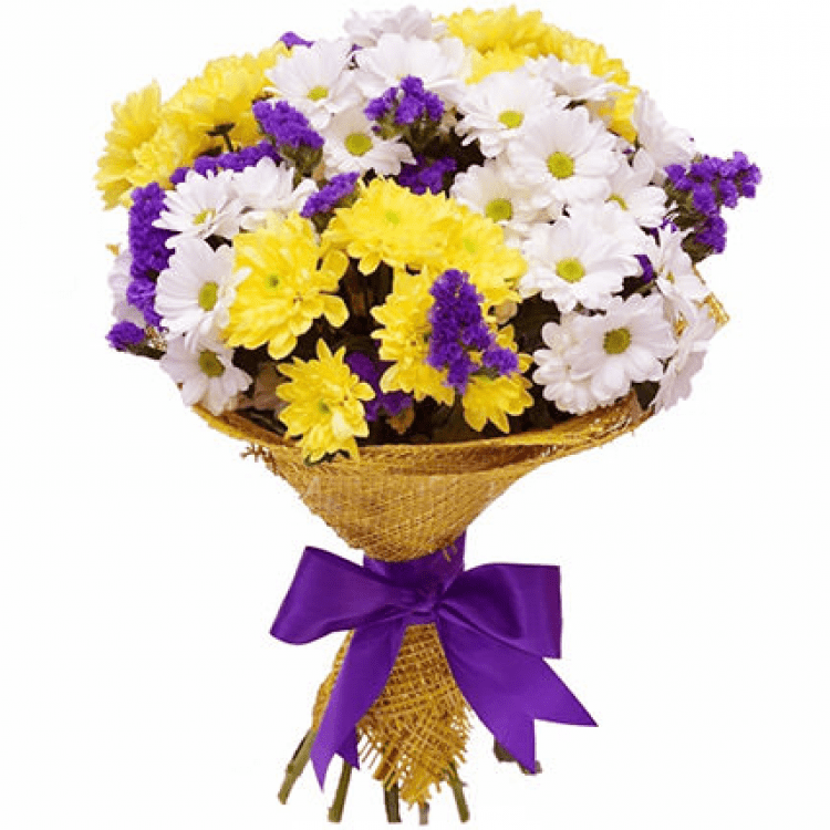 Склад: 7 гілок білої та жовтої хризантеми, мікс польових квітів, зелень, оформлення може відрізнятися.