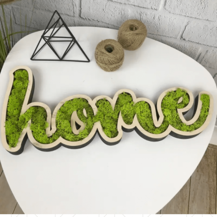 Дерев'яний інтер'єрний напис c декоративним мохом «Home»