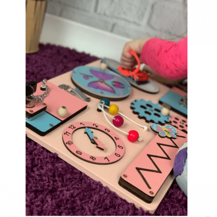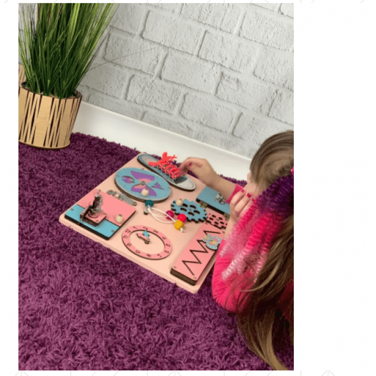 Дитячий дерев'яний бізіборд для дівчинки 30х40 см