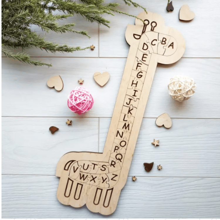 Фігурна англійська азбука з дерева "Велика розумна жирафа"