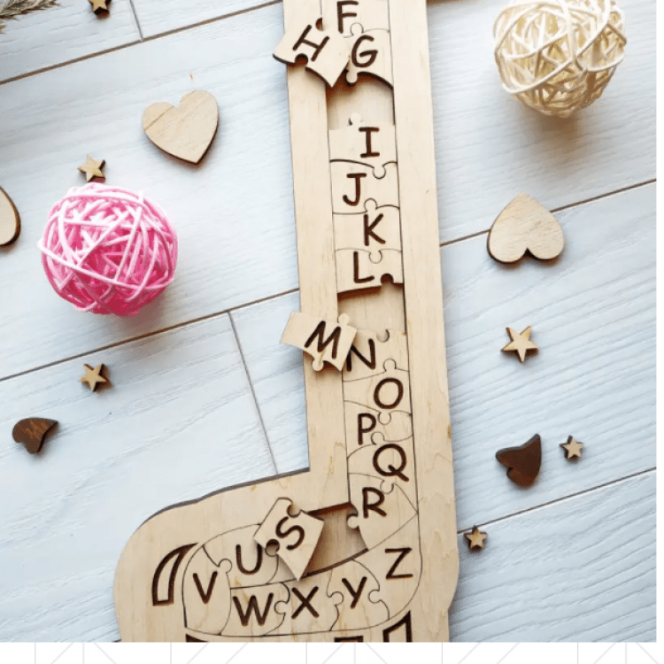 Опис: Фігурна англійська азбука з дерева "Велика розумна жирафа"