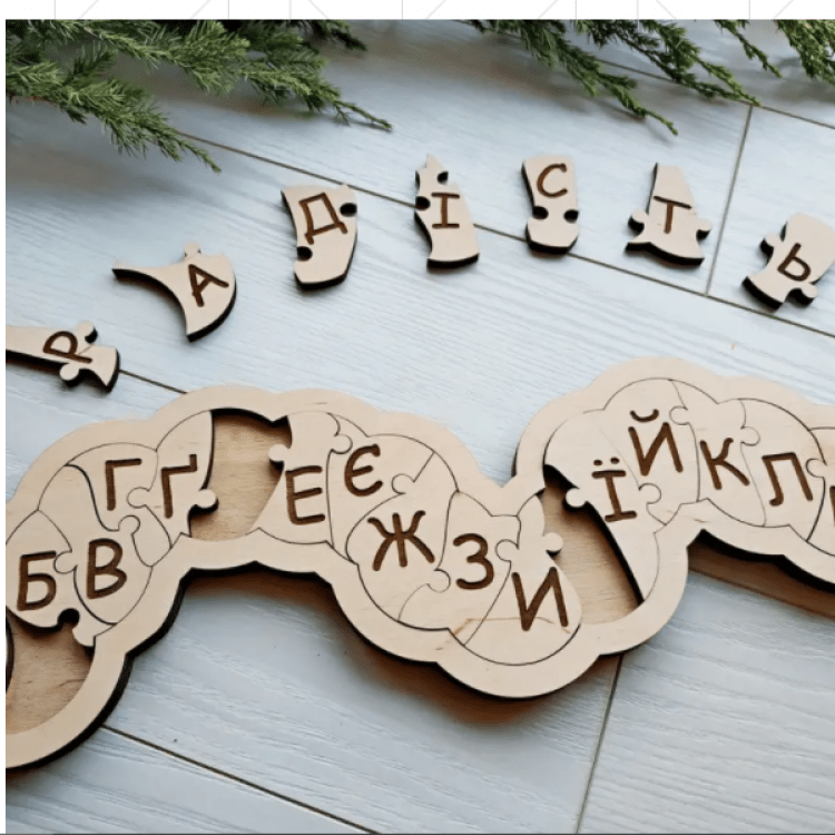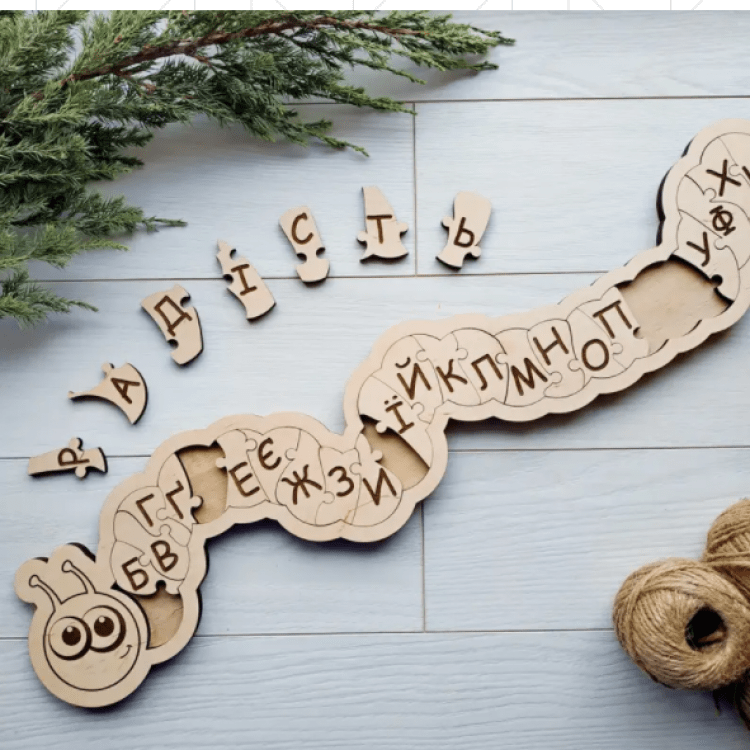 Фігурна українська азбука з дерева "Розумна гусінь"