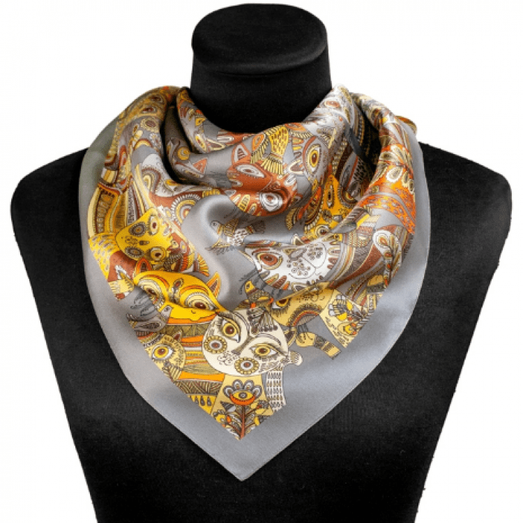 Хустка "Котики". Срібна. 55х55 см