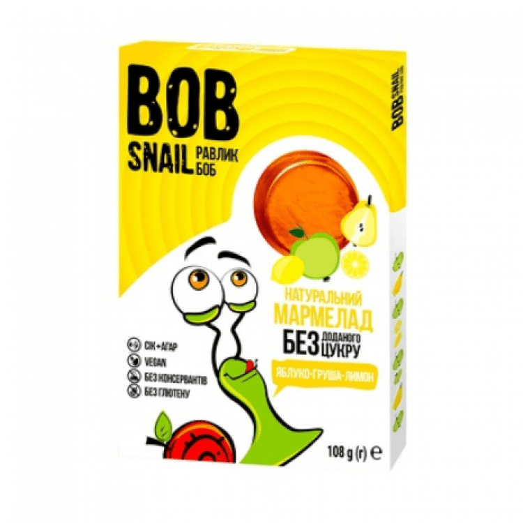 Опис: Мармелад Bob Snail яблуко-груша-лимон без цукру, 108г