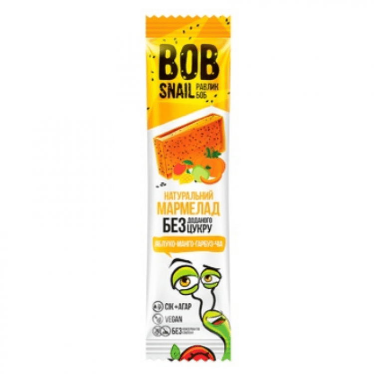 Опис: Мармелад Bob Snail яблуко-манго-гарбуз-чіа, 38г