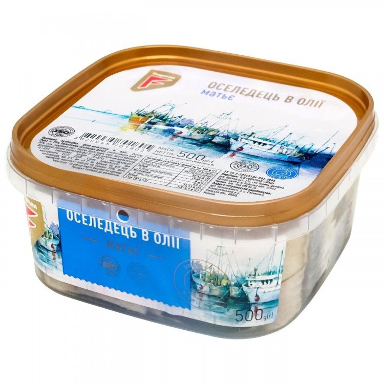 Опис: Оселедець філе-шматочки в олії 500г