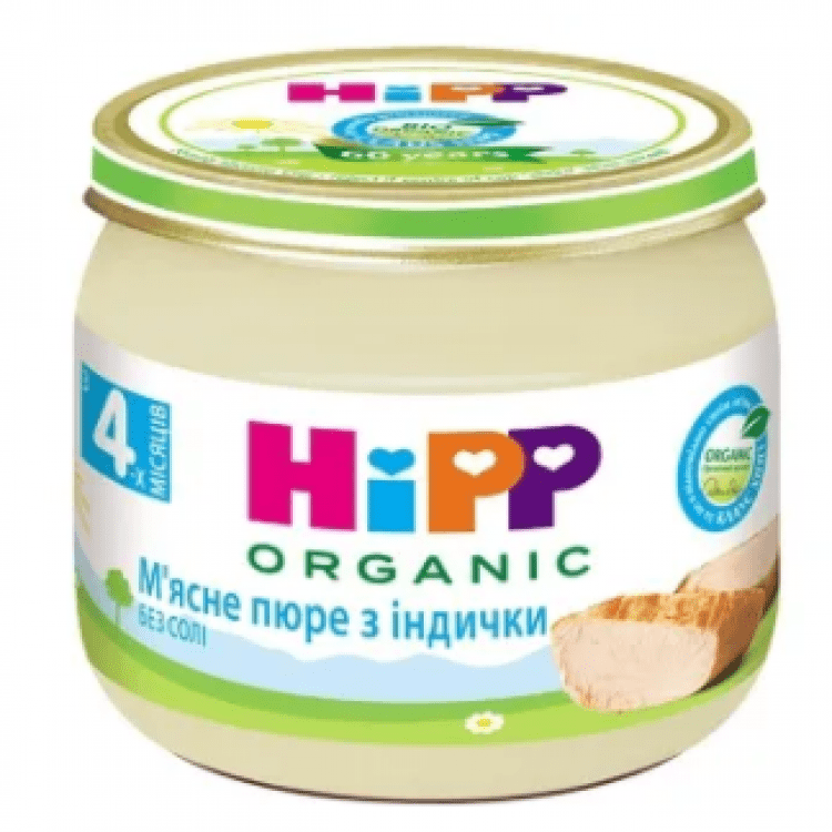 Опис: Пюре м'ясне HiPP з індички без солі для дітей з 4 місяців 80г