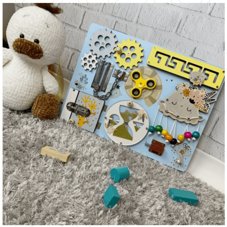 Опис: Розвиваючий дитячий бізіборд з дерева 30х40 см