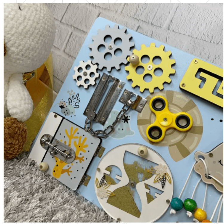 Розвиваючий дитячий бізіборд з дерева 30х40 см