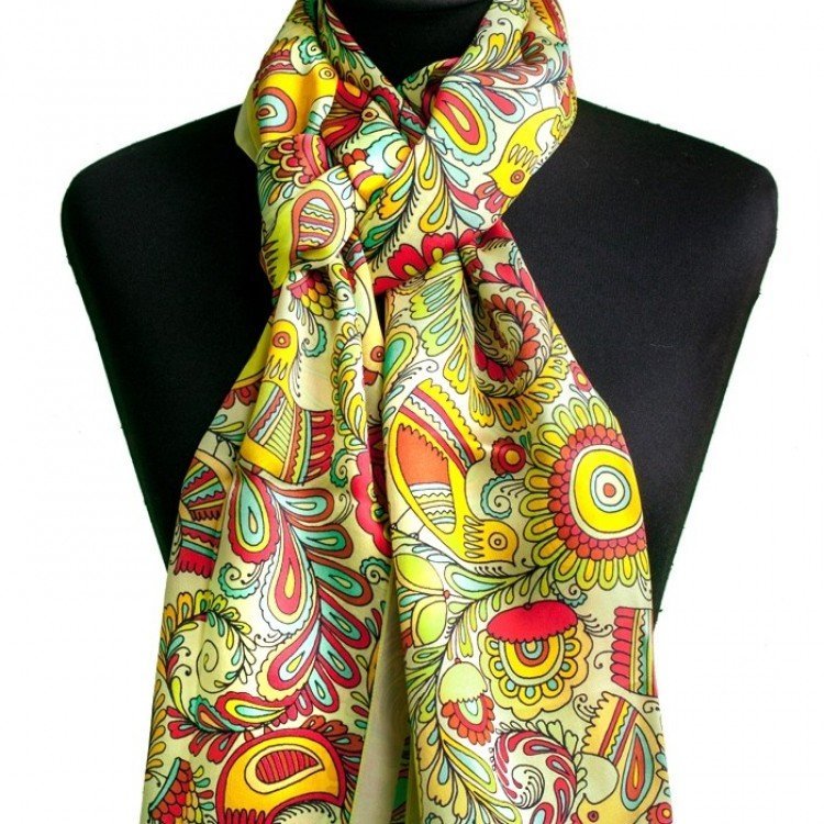 Опис: Шалик "Райські пташки". Жовтий. 173х40 см