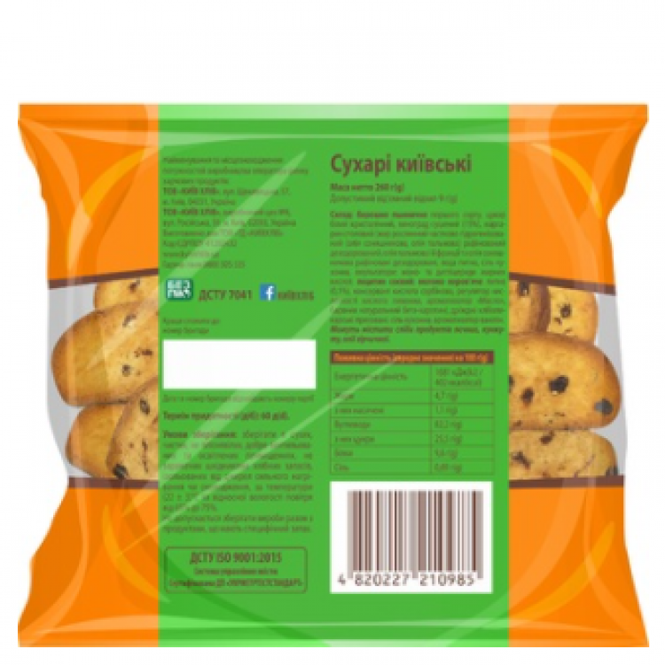 Опис: Сухарі Київхліб Київські, 260г