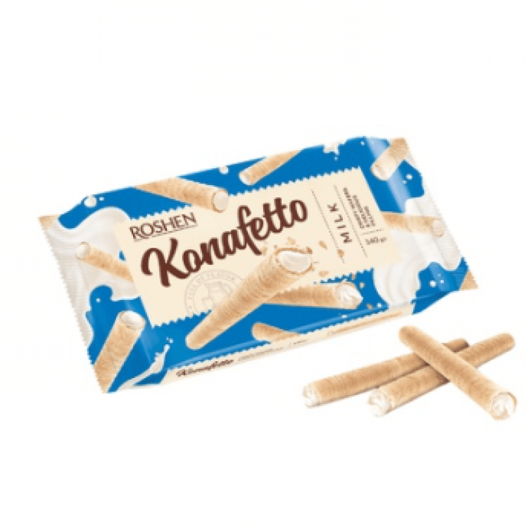 Опис: Вафельні трубочки Roshen Konafetto з начинкою молоко, 156г