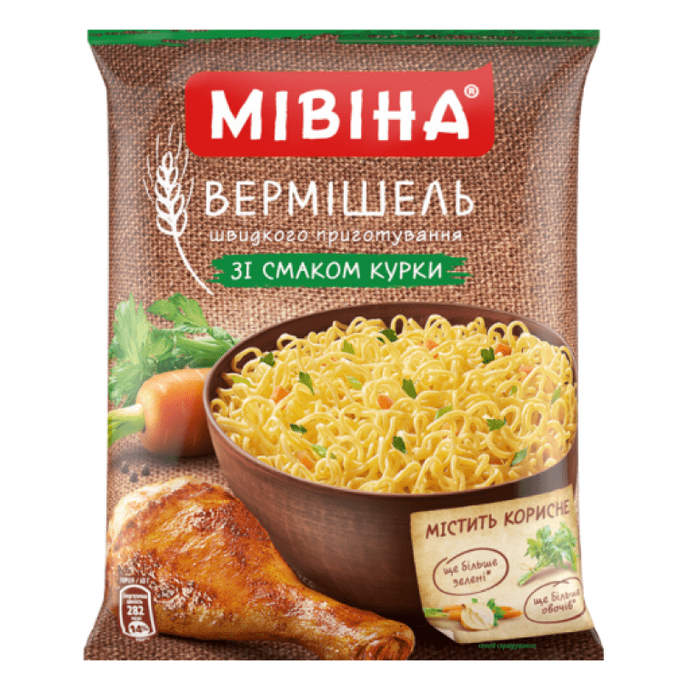 Опис: Вермішель швидкого приготування Мівіна (курка, негостра)
