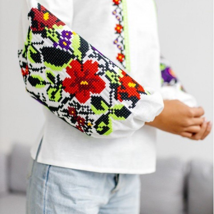 Вишиванка жіноча "АНАСТАСІЯ"(БІЛА З ЗЕЛЕНИМ)