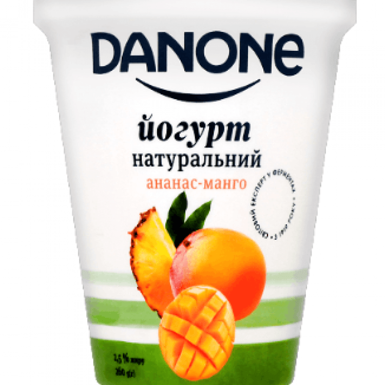 Опис: Йогурт Danone ананас-манго 2,5%, 260 г